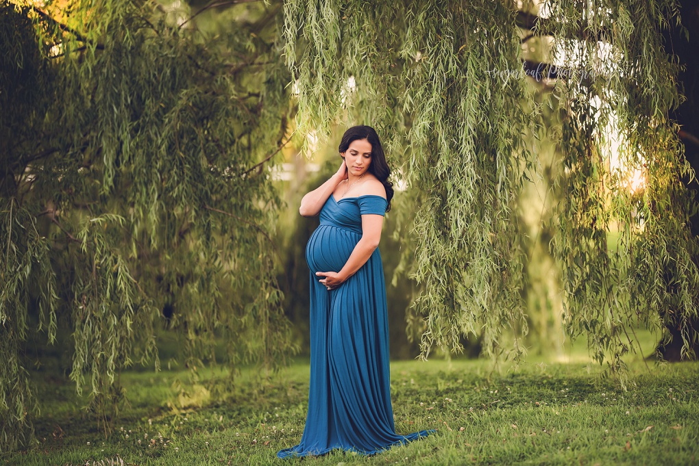 We took advantage of the gorgeous light pouring through the Weeping Willow tree and open fields at this location in Havre de Grace, Harford County. You would never know that it was a humid summer day and mosquitoes were attacking me. She was absolutely glowing and I love how her gallery turned out!