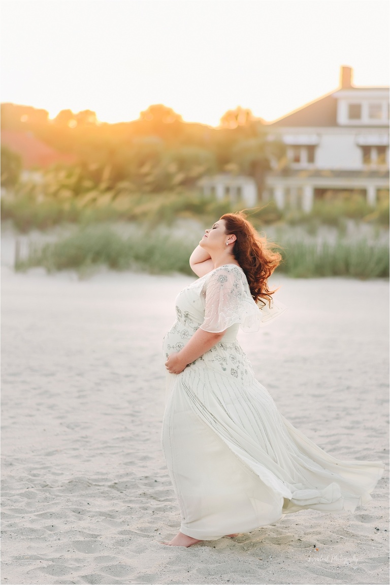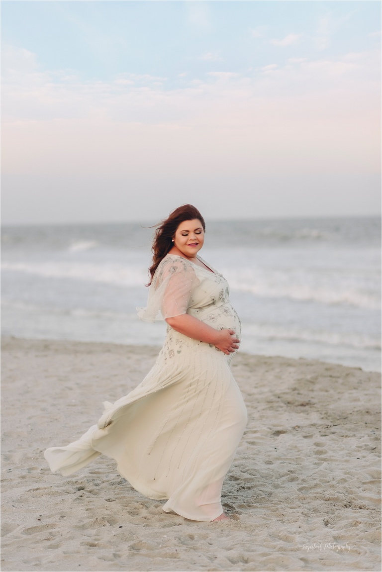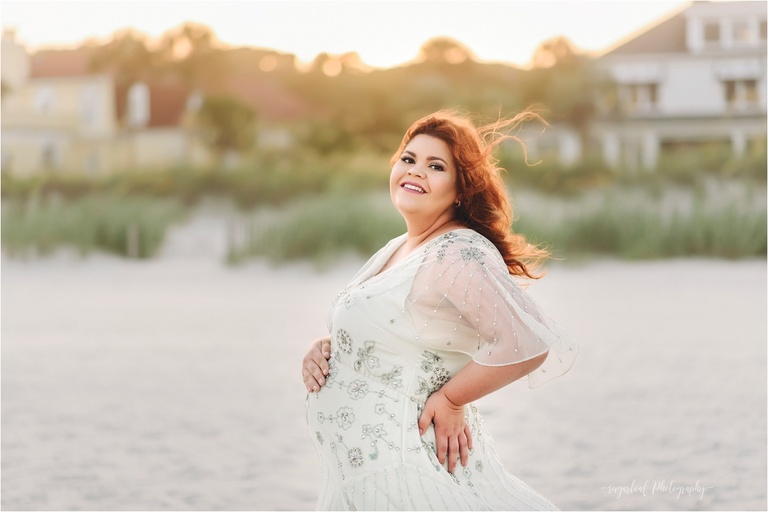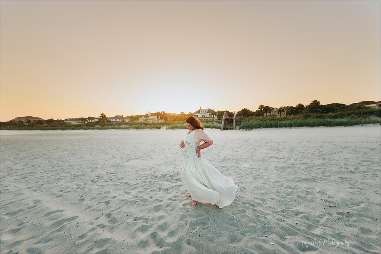My glowing sister-in-law wore one of my newest dresses in the Client Wardrobe! The beaded soft sage color created some beautiful sparkles in the sun. I can’t get enough of sunset beach maternity sessions like this, especially in Myrtle Beach, which is our newest vacation spot, as we just purchased a vacation home there.