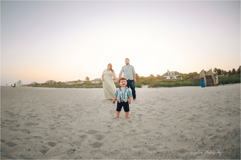 This sunset beach maternity session in Myrtle Beach was one of the most special I’ve done this year. I got to capture my little brother, and sister in-law and my adorable nephew during our family vacation in SC. We wanted to celebrate the upcoming arrival of my newest nephew this Fall on the beach, since their first maternity session was also done at the beach, but in South Africa. Myrtle Beach was absolutely the perfect location for this special maternity session. Empty beautiful beaches and great summer weather!
