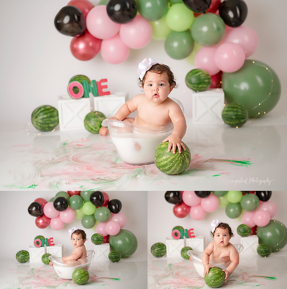 We finished Franki’s sweet one watermelon session with a milk bath. Not only baby’s love baths, it also helps with the cake clean up!