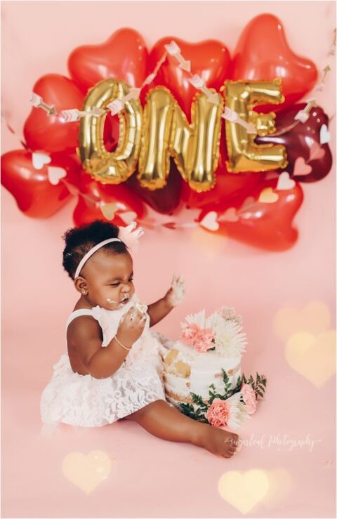 Valentine’s Day First Birthday Cake Smash Session – Baltimore Photographer