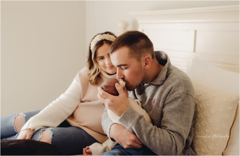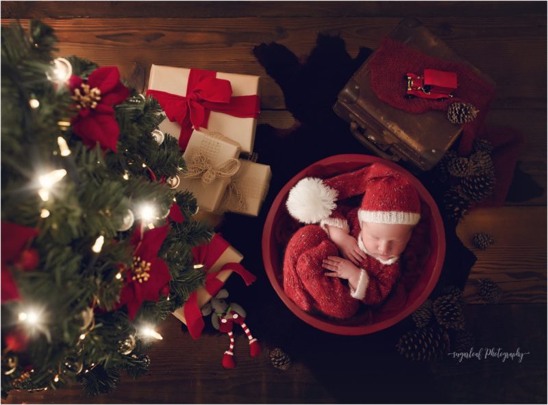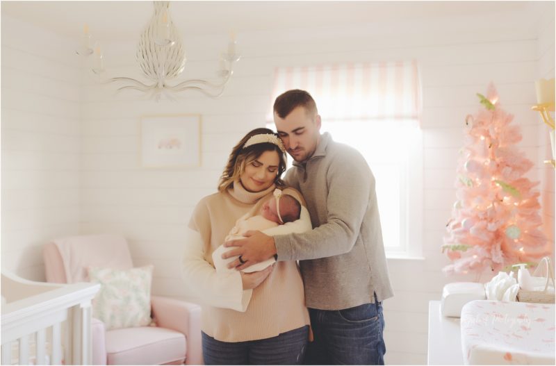 This newborn session with little Lola is a good example of the reason I love going to client’s home. We were able to capture some amazing moments in her beautiful nursery decked out for Christmas and even their sweet dog made a cameo.