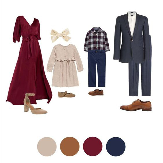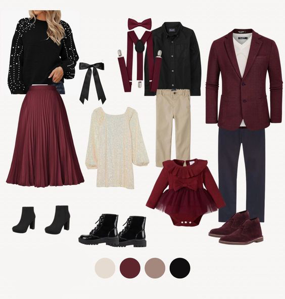 - Coordinate, Don’t Match: When planning outfits for the family, aim for coordinating colors rather than matching exactly. This creates a cohesive look without being too “matchy-matchy.” Sticking with neutral tones and holiday-inspired colors like green, gold, and deep reds will ensure everyone looks put together.